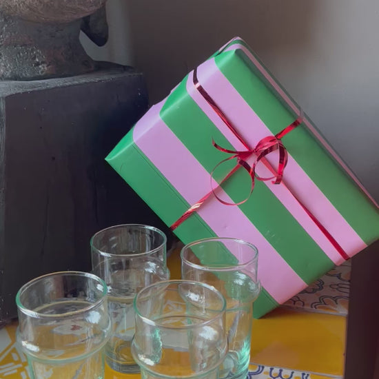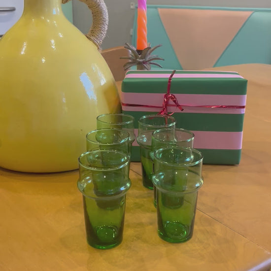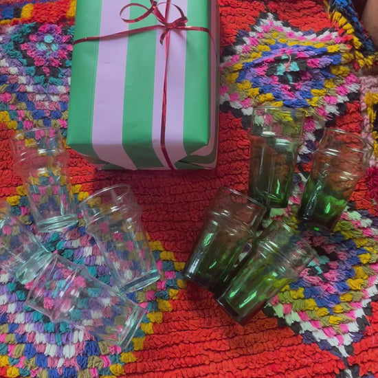 Elevate your gifting game with this stunning set of six handblown recycled glassware, crafted by skilled artisans in Morocco. 🌍 Each piece is ethically sourced, eco‑friendly, and full of character — no two glasses are exactly alike.